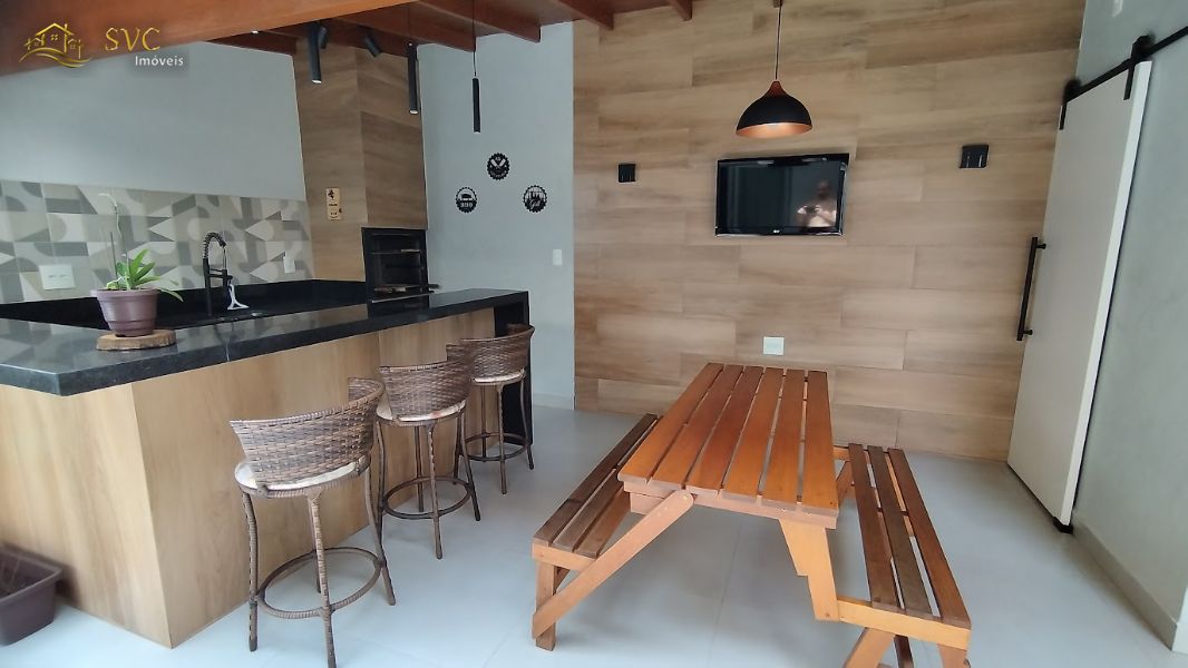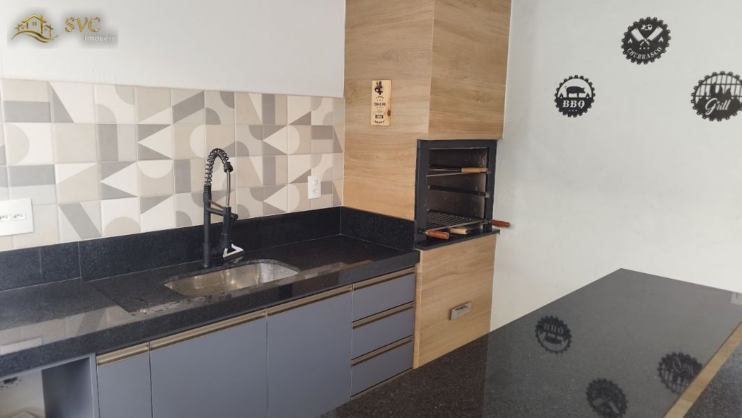 A casa conta com uma área gourmet moderna e super convidativa, equipada com churrasqueira — perfeita para reunir amigos e família.