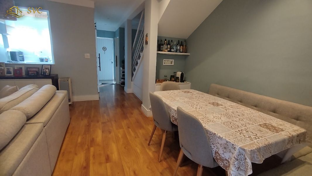Sobrado com 3 quartos, sendo 1 suíte, 2 banheiros e 1 lavabo.